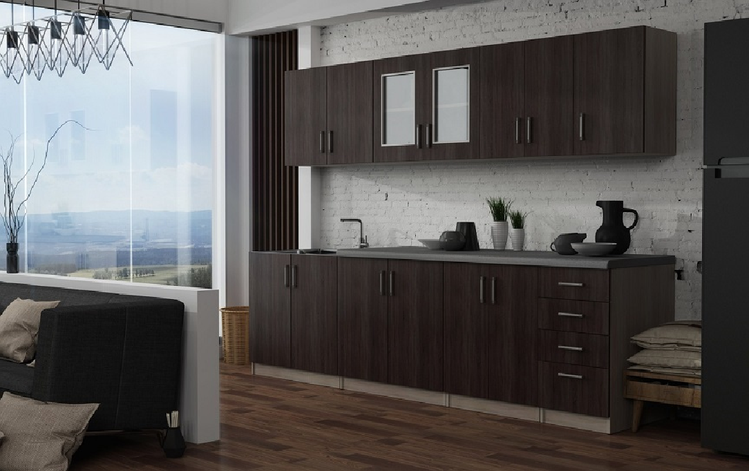 Komplet mebli kuchennych FRESCO B4-Kasztan Wenge+Biały-Mat-8 elementów + Blat GRATIS | Zmontowane | 15 wariantów kolorystycznych