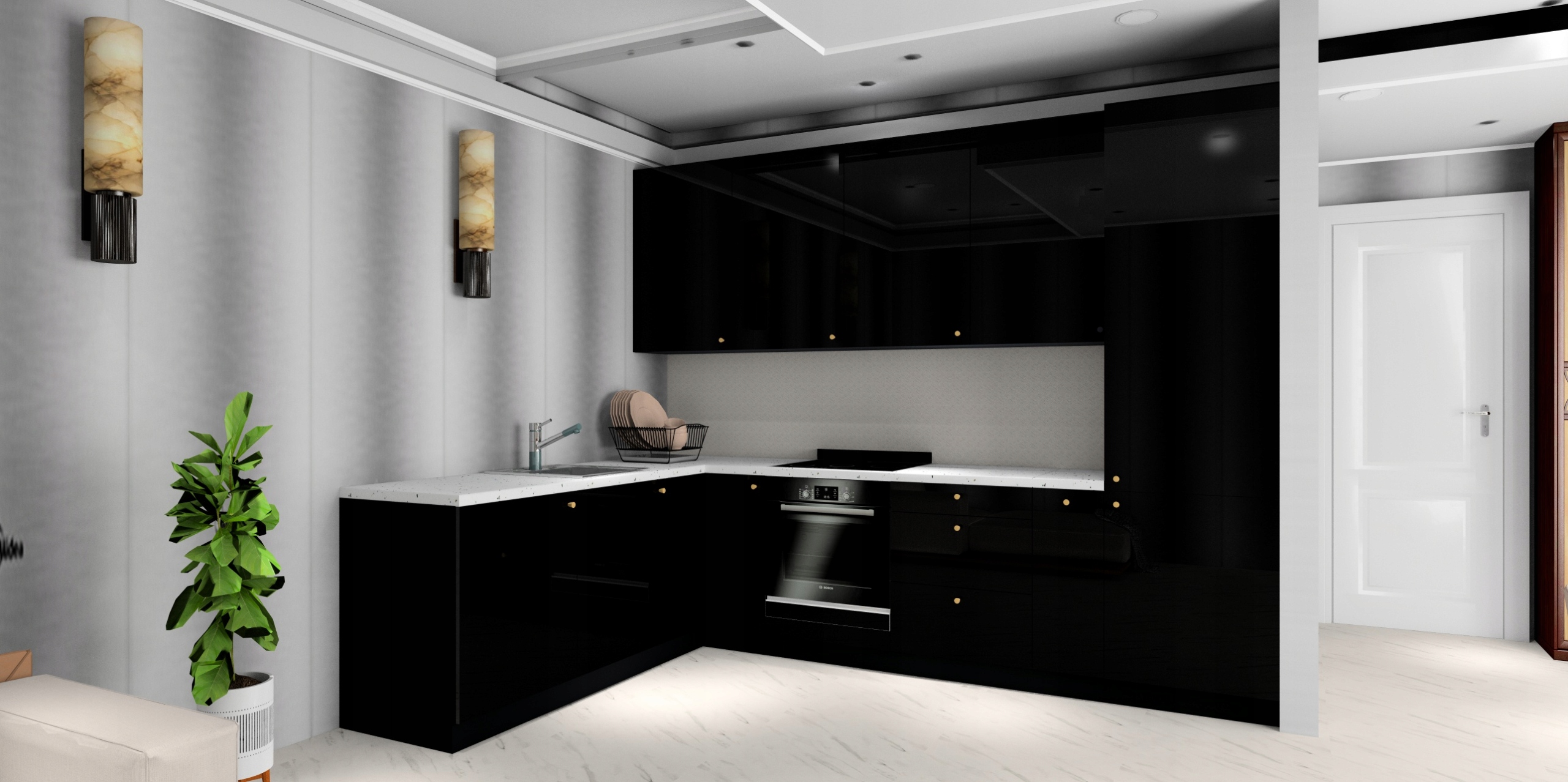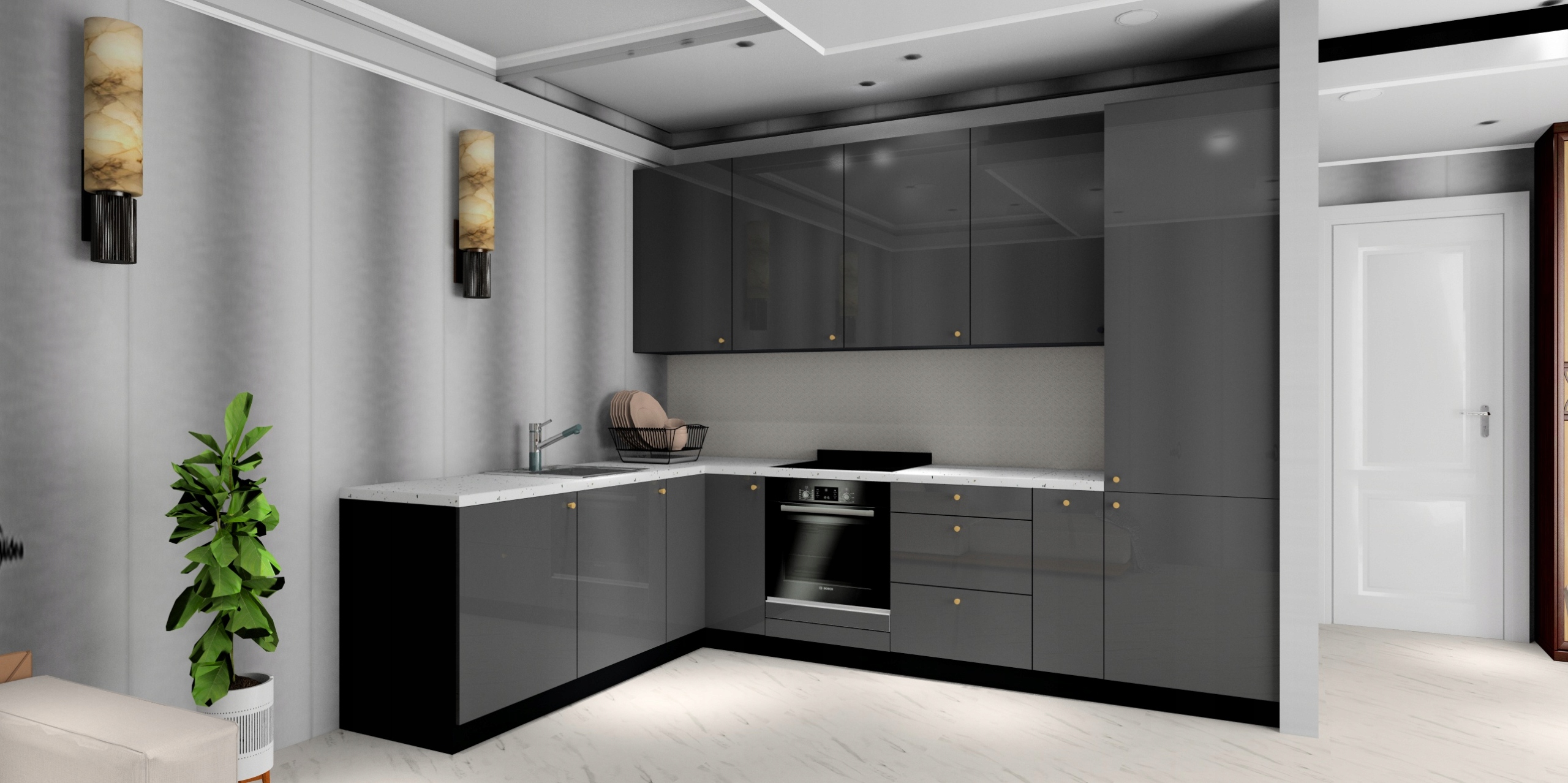Meble kuchenne Benek Modułowe Narożne Grafit Połysk + Czarny Mat Blat