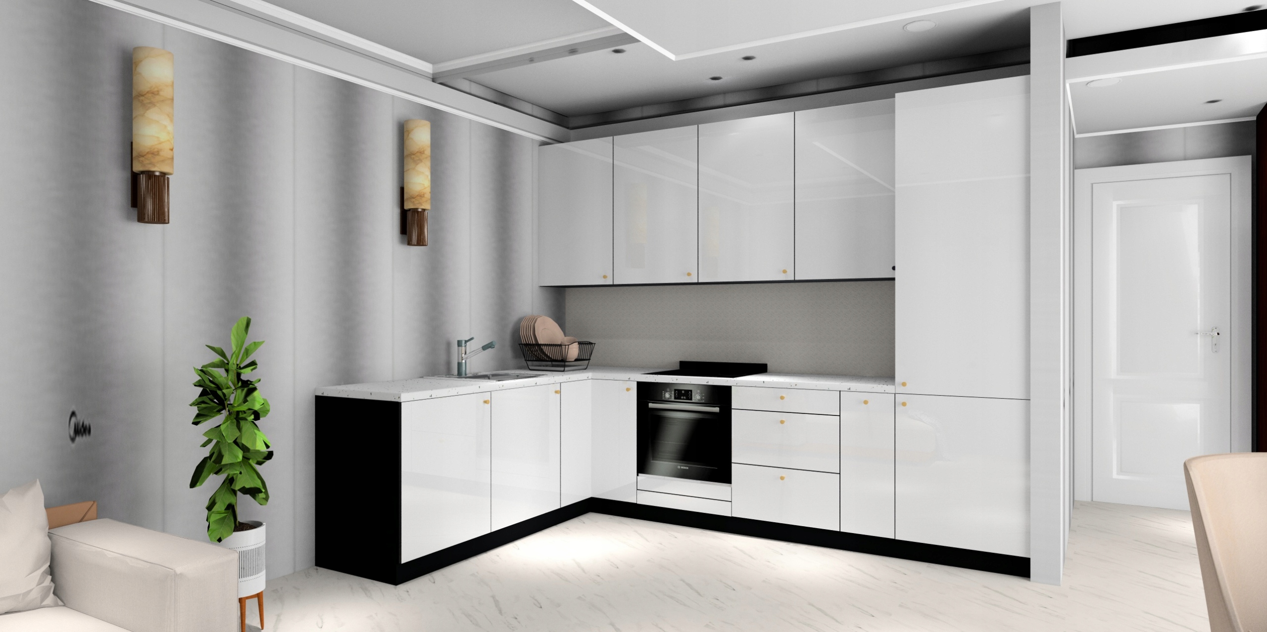 Meble dostarczamy SKRĘCONE , wystarczy ustawić dolne szafki i powiesić górne .