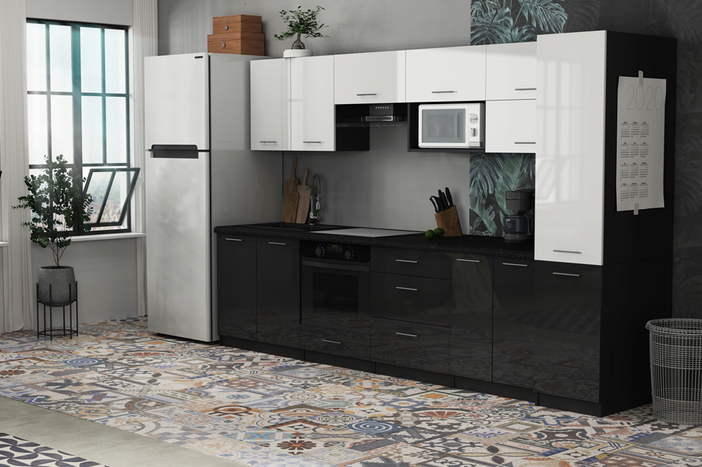 3. Fronty biały połysk + korpus biały + blat Andromeda czarna